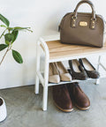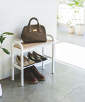 Dit schoenenrek van Yamazaki heeft een multifunctionele bank en wordt de nieuwe blikvanger van je entree. Het rek wordt geleverd met een houten zitting aan de bovenkant, terwijl de middelste staven gebruikt kunnen worden om schoenen te plaatsen. De vrije onderste gleuf is ideaal om wat meer schoenen of zelfs kleinerere spullen in te plaatsen. Dankzij het elegante en moderne ontwerp past het rek geweldig in iedere hal.
