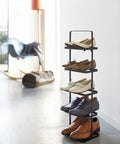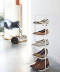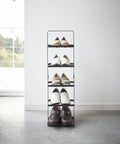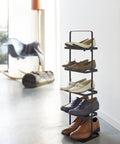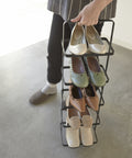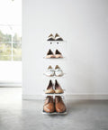 Dit stijlvolle schoenenrek past ook in kleinere entree's en is perfect geschikt voor het opbergen van schoenen zonder al te veel ruimte in beslag te nemen. Door de handgreep is hij bijzonder gemakkelijk op te pakken en te verplaatsen. Gemaakt van staal en ontworpen in Japan.