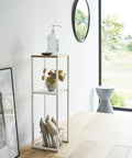 Dit prachtige rek met 2 niveaus van Yamazaki voegt een elegant accent toe aan je huis. Het rek heeft twee plankjes waarvan één van bamboe, wat warmte toevoegt aan elke kamer. Met zijn slanke ontwerp kan hij naadloos in bijna elke omgeving worden geïntegreerd en biedt hij voldoende ruimte om planten, boeken, geurstokjes of decoraties op te bergen.