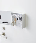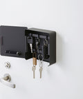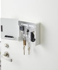 Deze moderne sleutelbox van Yamazaki is de ideale oplossing om sleutels veilig en geordend op te bergen in je hal. De box kan door zijn magnetische achterkant op elk glad metalen oppervlak worden bevestigd maar kan ook aan een muur worden geschroefd. De klepje houdt de inhoud verborgen en zorgt voor een nette en opgeruimde uitstraling.