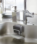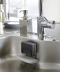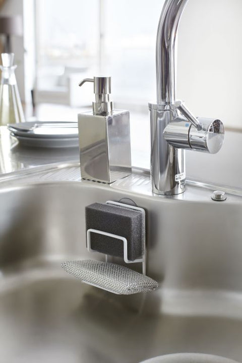 Deze dubbele sponshouder van Yamazaki is eenvoudig aan de zijkant van de gootsteen te bevestigen door middel van de zuignap. De houder beschikt over twee niveaus, voor gewone en zware sponzen. Het belangrijkste is dat de sponzen aan de lucht kunnen drogen in plaats van in een plas water te liggen waardoor de schimmelgeur van de sponzen wordt voorkomen.