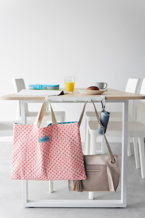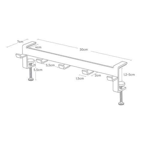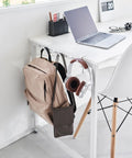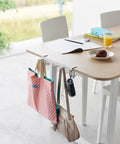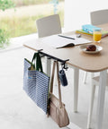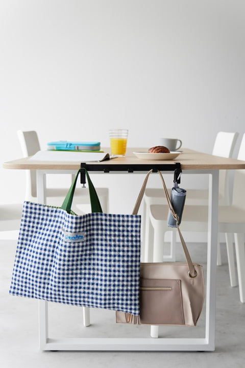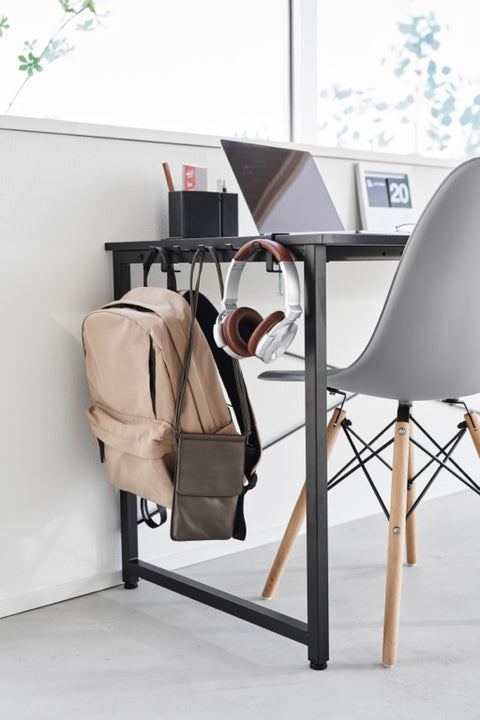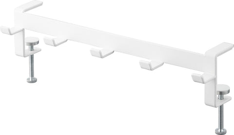 Deze haken van Yamazaki kunnen dankzij de verstelbare schroeven aan tafels en bureaus worden bevestigd en creëren daarmee extra opbergruimte. De hakenrail is uitgerust met 5 stevige haken en kan worden gebruikt om tassen, rugzakken, koptelefoons en andere huishoudelijke spullen mee op te bergen.